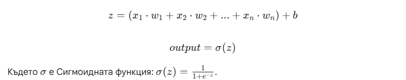 За всеки неврон в нашия MLP (Multi-Layer Perceptron), пресмятането изглежда така: