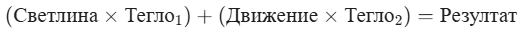 Пример: Ако теглото за Движение е много голямо (напр. 5.0), а теглото за Светлина е малко (напр. 0.1), невронът казва: "Мен ме интересува основно дали някой се движи, светлината почти няма значение!".